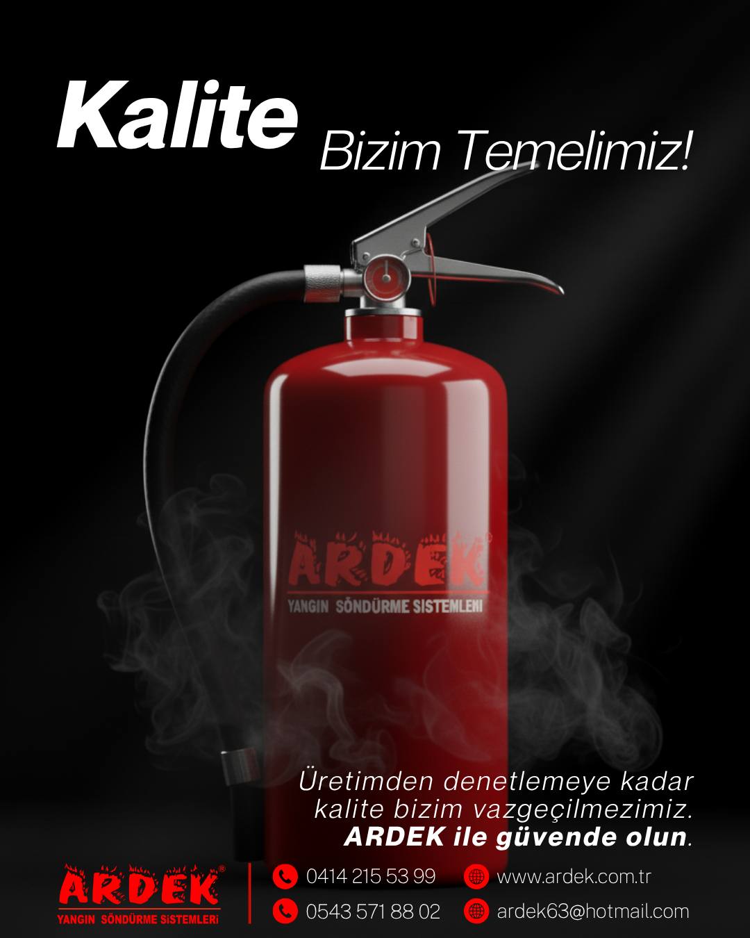 ARDEK, yangın söndürme sistemleri ve elemanları konusunda değişen şartlara hızla adapte olan profesyonel kadrosuyla dikkat çekiyor. Firmanın üretim ve hizmet kalitesi; TS 862 EN3, CE, DIN ISO 9002 TUV gibi uluslararası sertifikaların yanı sıra, Sanayi Bakanlığı Garanti Sertifikası ve Hizmet Yeterlilik Belgeleri ile tescillenmiş durumda.