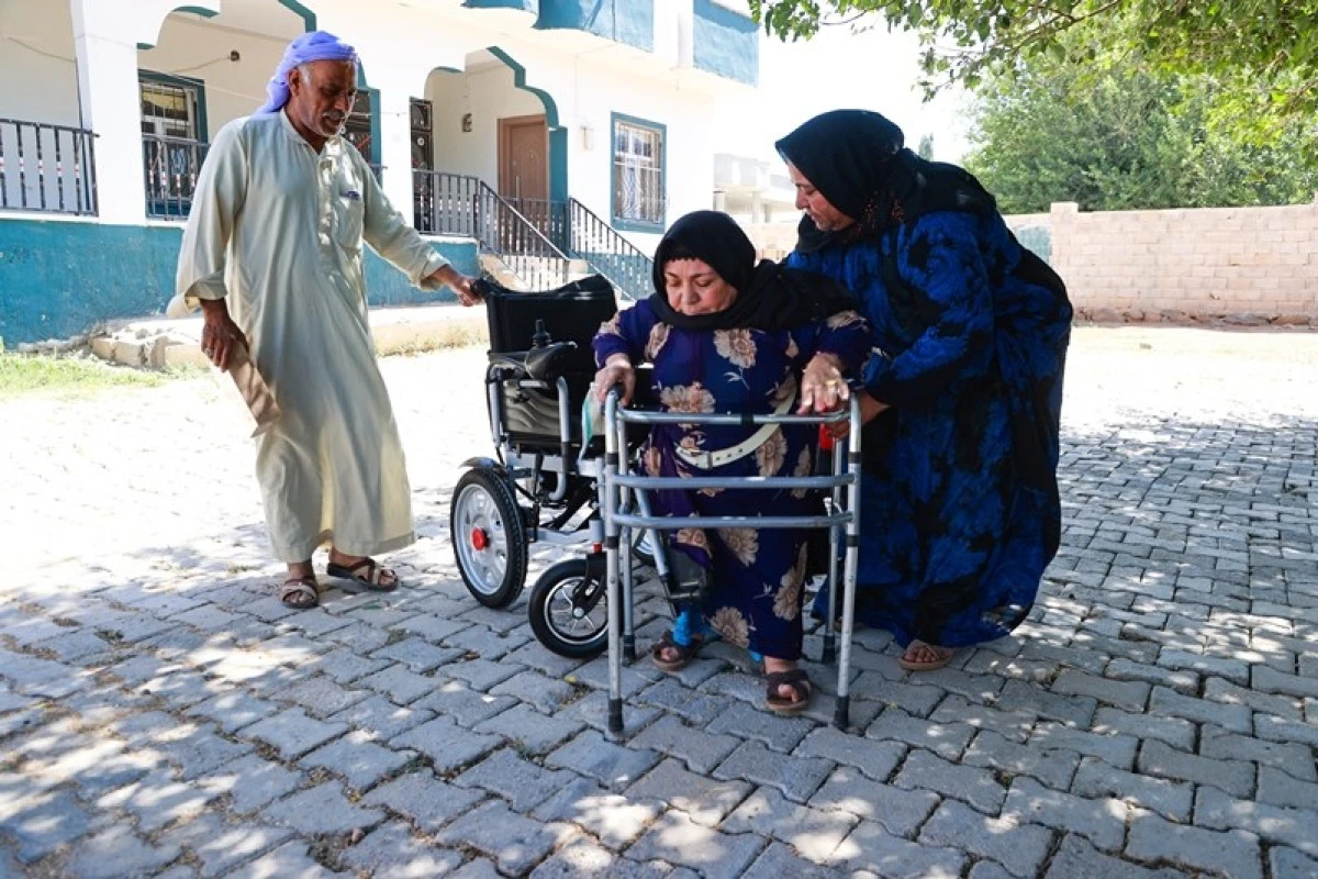 Harran Tantana kırsal mahallesinde yaşayan bedensel engelli Aysel Bata'nın akülü tekerlekli sandalyesi, Harran Belediyesi tarafından ikamet ettiği adreste teslim edildi