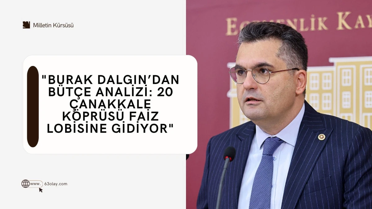 2026 yılı merkezi yönetim bütçesi üzerine değerlendirmelerde bulunan Burak Dalgın, bütçedeki faiz ödemelerinin 2,7 trilyon liraya ulaştığına dikkat çekti. Bu rakamın devasa bir kaynak israfı olduğunu belirten Dalgın, şu çarpıcı kıyaslamayı yaptı: "Bu para ile 20 tane Çanakkale Köprüsü, 2 bin tane yangın söndürme uçağı veya 90 tane TCG Anadolu gemisi yapılabilir. Hükümet vatandaşa enflasyonu %16 olarak öngörüyor ama kendi alacaklarını (vergi, harç, ceza) çok daha yüksek oranlarda artırıyor. Bu adil değildir."