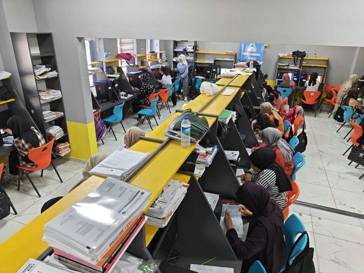 Hafta sonu yapılacak olan üniversite seçme sınavları öncesi sabah saat sekizden akşam sekize kadar Süleymanşah Gençlik Merkezi’nde deneme sınavları çözüp, eksiklerini belirleyen gençlere, burada görevli öğretmenler de destek veriyor.