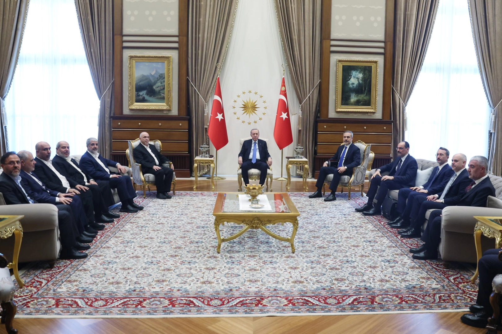 Cumhurbaşkanı Recep Tayyip Erdoğan, Hamas Şura Meclisi Başkanı Muhammed Derviş'i kabulünde, Hamas'ın 471 gün boyunca verdiği mücadelenin, direniş ruhunun kaybolmayacağını bir kez daha gösterdiğini ifade etti.