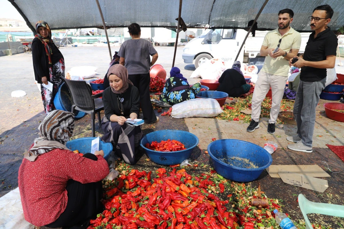 Şanlıurfa İl Sağlık Müdürlüğü tarafından Biber Temizleme Alanlarında Kanser Taramaları ve Bağımlılıkla Mücadele Anlatıldı.