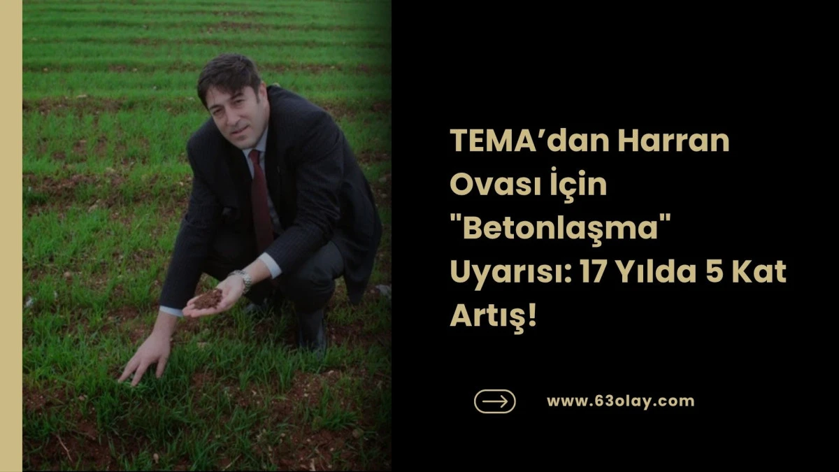 TEMA Vakfı Şanlıurfa İl Temsilciliği, Harran Ovası’ndaki kontrolsüz yapılaşmaya karşı sert bir uyarı yayınladı. Prof. Dr. Ali Rıza Öztürkmen, 2007’de 20 bin dekar olan kayıp alanın, 2024 itibarıyla 100 bin dekara ulaştığını belirterek, "Bu bir ekolojik yıkımdır" dedi.