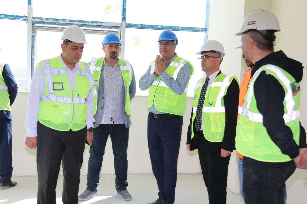 Merkez Hastane, kalp Damar ve Göğüs Cerrahi Hastanesi, Dahiliye Onkoloji Hastanesi, Kadın Doğum ve Çocuk Hastanesi, Genel Hastane inşaatından oluşan şantiyeyi gezerek İnşaat yetkililerinden çalışmalar ve süreç hakkında bilgi aldı.