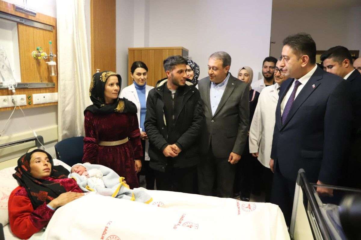 Şanlıurfa Eğitim ve Araştırma Hastanesi (Eyyübiye) Hastanesi'ne giden Şanlıurfa Valisi Hasan Şıldak, dünyaya gelen ilk bebeği ziyaret etti.