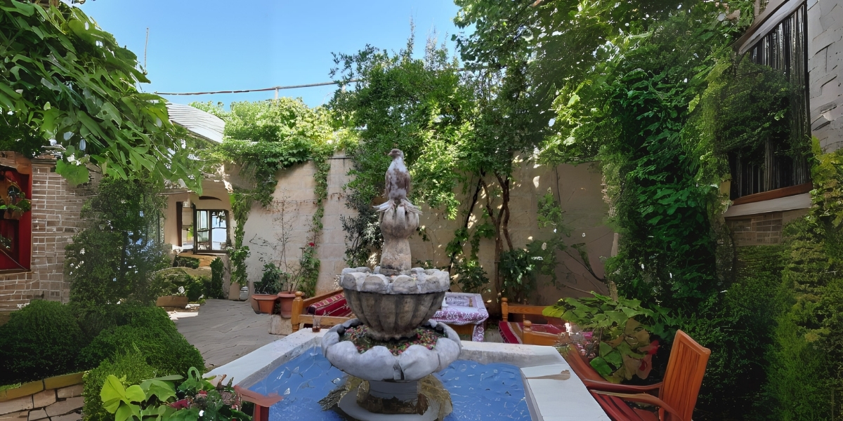 Otel yaşamının kalbi olan avluda, gün taze kahve kokusuyla başlıyor ve akşam olunca ay ışığının kemerlerin kıvrımına ilişmesiyle sesler kısılıyor. Kaya'nın ifadesine göre içeride, "yalnızca nefes alan bir ritim kalıyor."