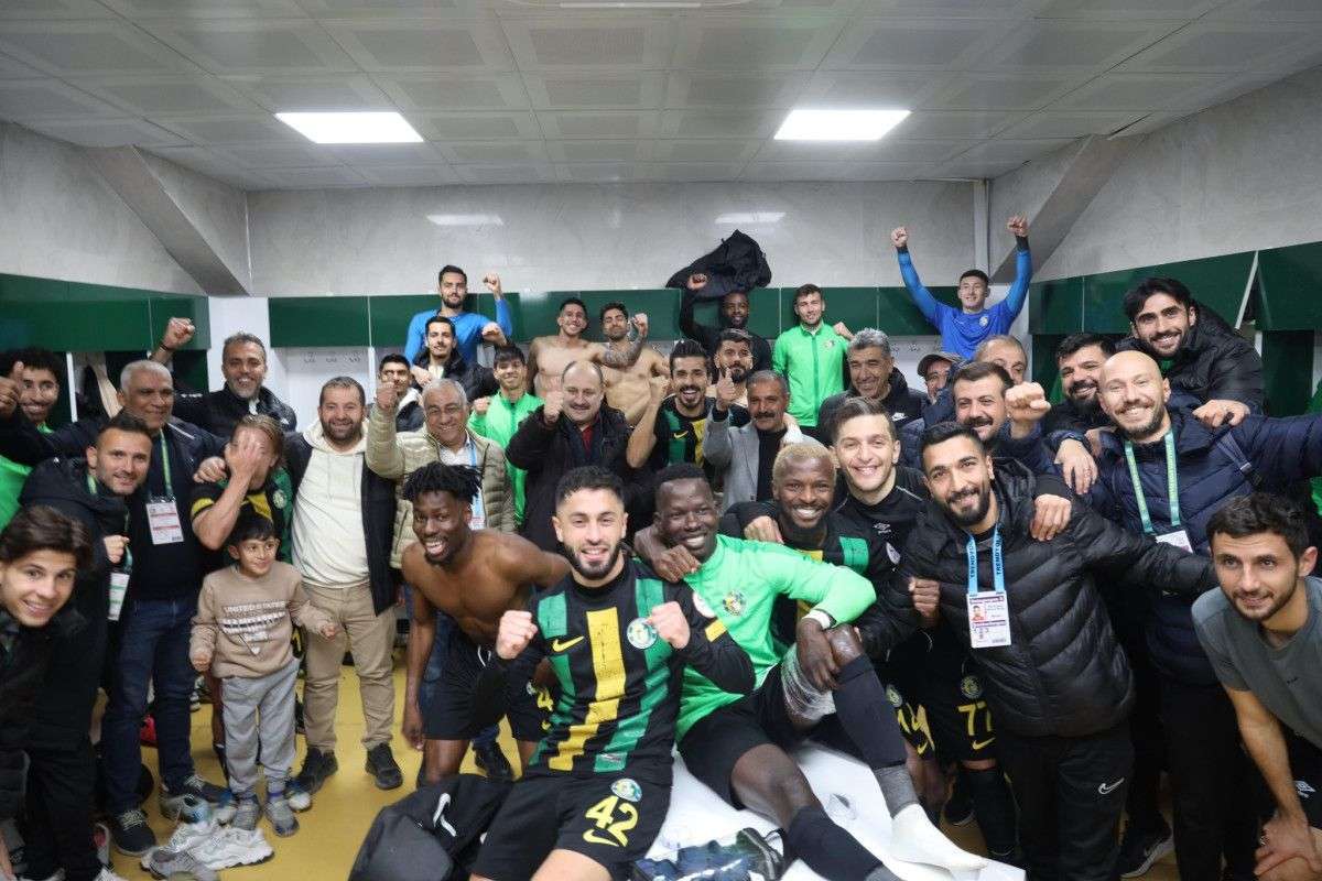 Kendi evinde Pendikspor’u ağırlayan Şanlıurfaspor’un bugünkü maçını izleyen Şanlıurfa Büyükşehir Belediye Başkanı Mehmet Kasım Gülpınar ve Şanlıurfaspor Eski Kulüp Başkanı Emin Yetim maç sonrası soyunma odasında takımı tebrik ederek zafer pozu verdi.
